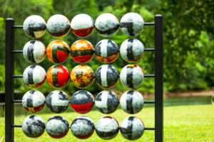 The Rolling Spheres sculpture allows visitors to create a wide range of looks merely by safely rotating the painted plastic spheres.